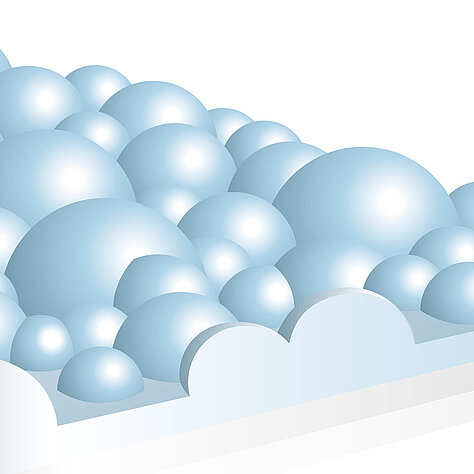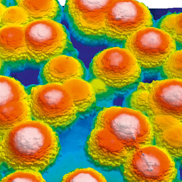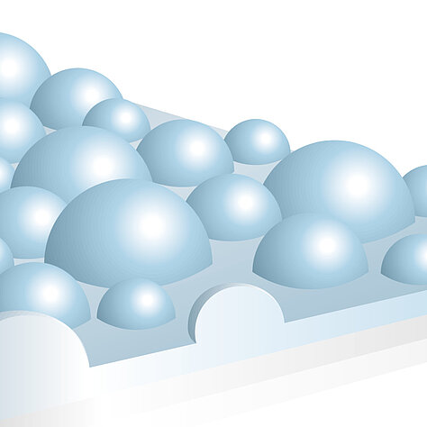 Schematische Darstellung einer TOPOCROM®-Beschichtung. Markant ist die halbkugelförmige Oberflächenstruktur, welche in industriellen Prozessen unterschiedliche Eigenschaften aufweist bzw. ermöglicht.