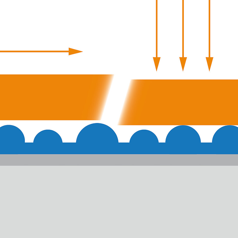 Der Aufbau eines Schichtsystems (Basisschicht, Strukturschicht, Deckschicht) erfolgt in einem Arbeitsgang