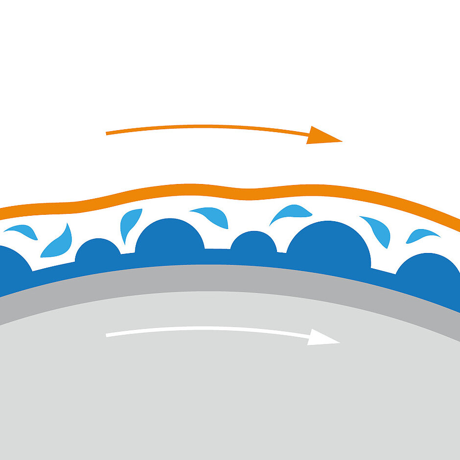 Optimierte Gleiteigenschaften durch reduzierten Traganteil. Gute Gripp-Eigenschaften bei entsprechender Druckbelastung.