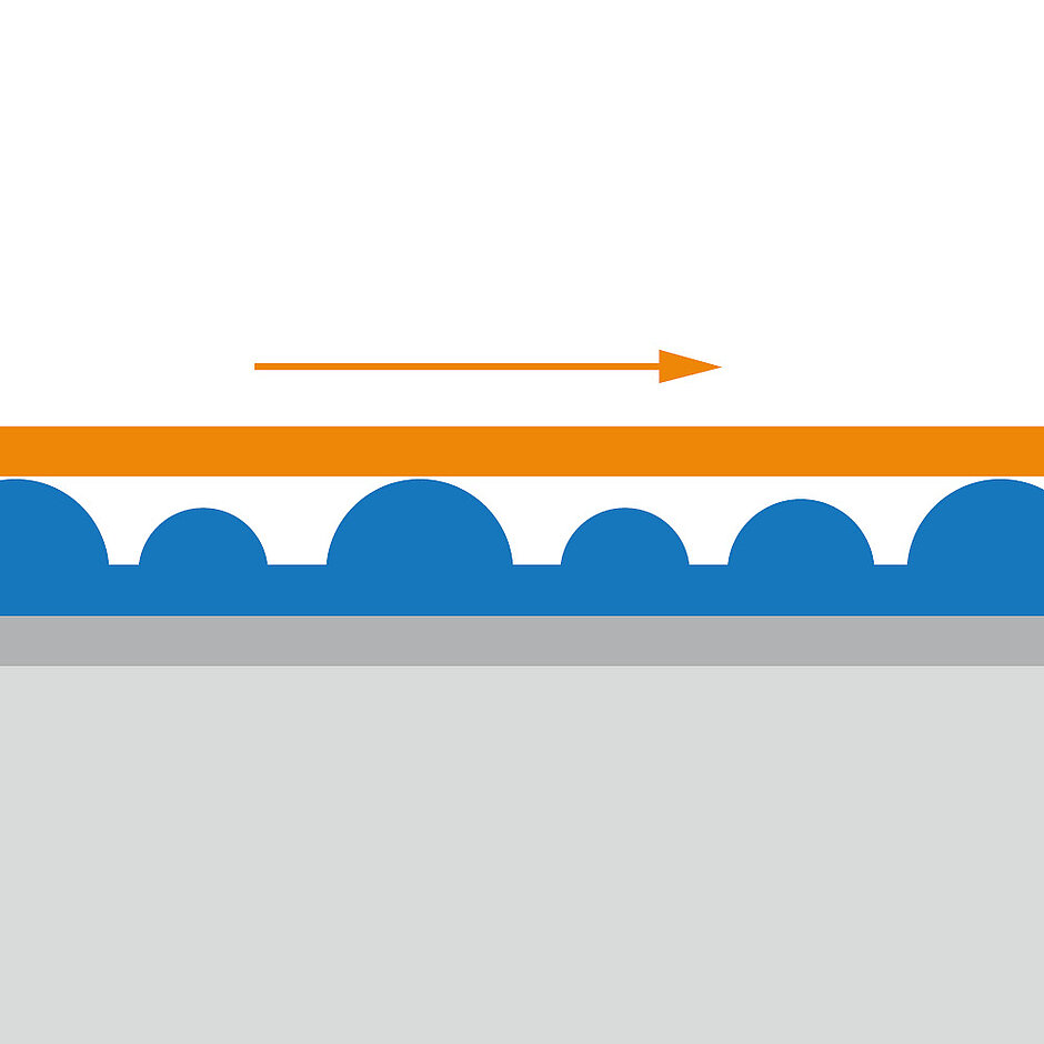 Diese besondere Eigenschaft der TOPOCROM®-Oberflächenbeschichtung erlaubt es, bei rotierenden Walzen und Rollen einen Flüssigkeitsfilm (z. B. Wasser, Farbe oder Schmiermittel) gleichmäßig aufzutragen. Die Oberflächenstruktur erlaubt eine definierte Flüssigkeitsförderung.