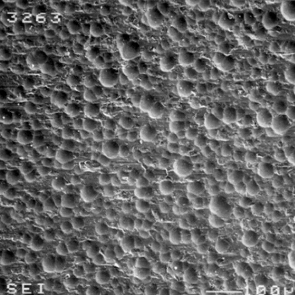 Die TOPOCROM®-texturierte Feinblech-Oberfläche zeigt die von der Texturierwalze übertragene Struktur in Form von kleinen Vertiefungen in stochastischer Verteilung. Diese Blech-Oberflächen zeichnen sich besonders durch die Variabilität der Oberflächen-Topografie aus. Aus der Stahl- und Automobil-Industrie liegen Untersuchungsberichte vor (Zustellung auf Verlangen).