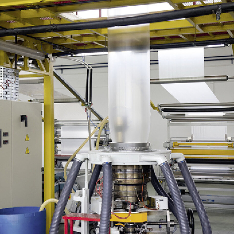 During melting, the internal friction (dissipation) in the material is mainly used. The conveying principle overcomes the counterpressure of the extrusion die and forms the melt. The semi-finished product is then calibrated, cooled and brought to size.